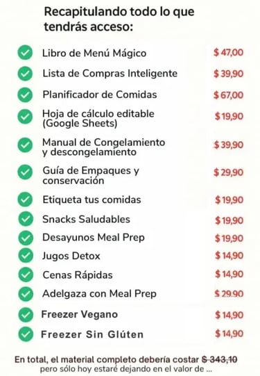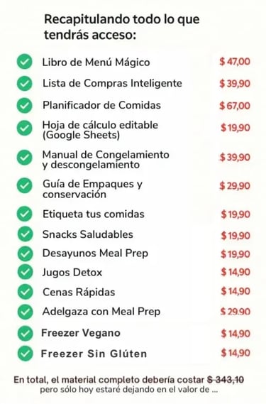 Y como BONOS, te damos 7 regalos exclusivos adicionales que complementan tu Menú Mágico para que no te falte nada en la semana.