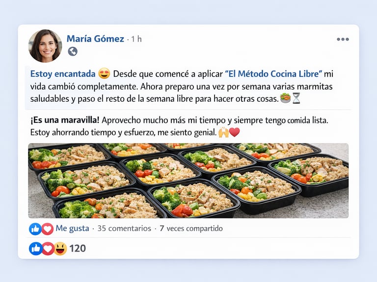Con El Método Cocina Libre tendrás 2 semanas sin cocinar y tus comidas siempre listas para disfrutar.